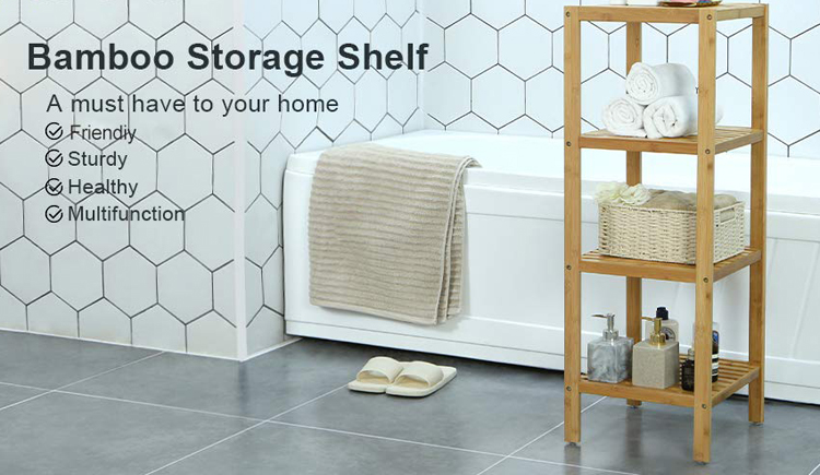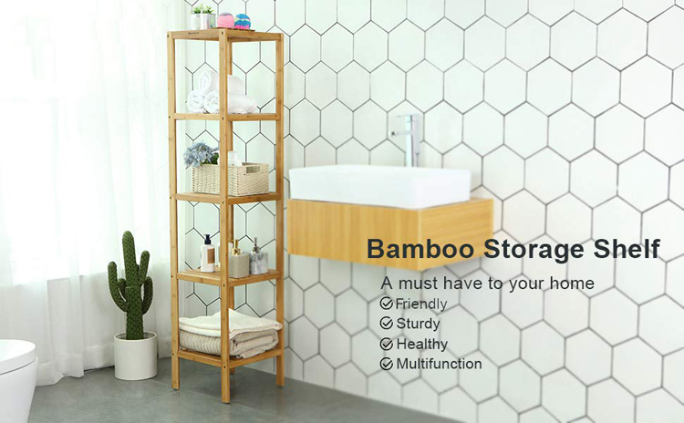 100% natural bamboo, environment friendly and sturdy; 9 tiers for toiletries, towels, sundries, decorative things, knick knacks, shoes, books, plants, spice and small appliances