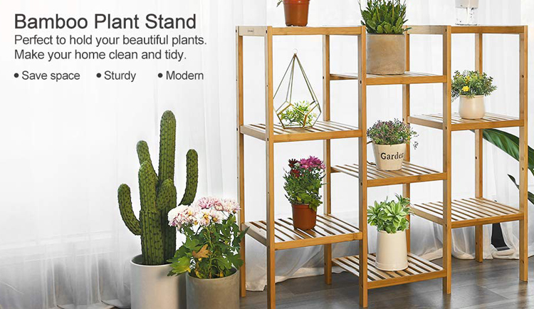 Bamboo Customizable Plant Stand Shelf Flower Pots Holder Display Rack Utility Shelf Bathroom Rack Storage Rack Shelving Unit