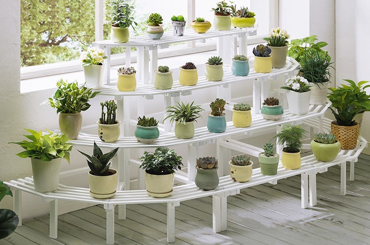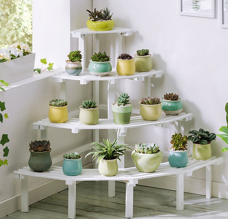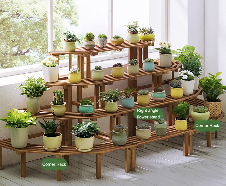 4 Tiers Pine Wood Corner Rack Flower Pot Stand Plant Display Shelf Garden Decor