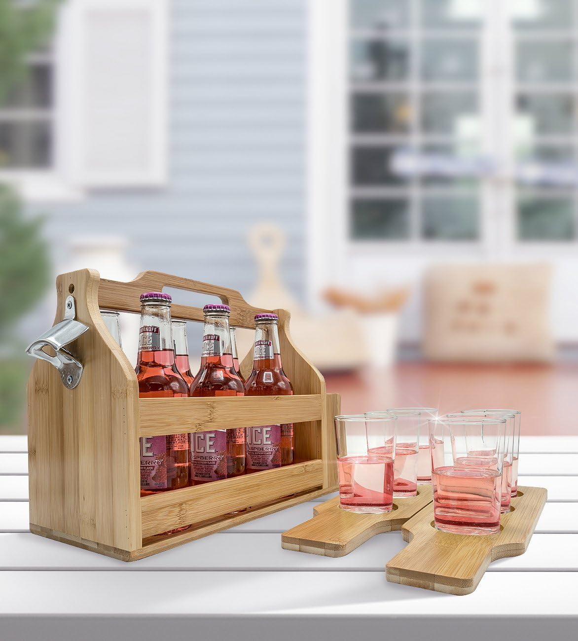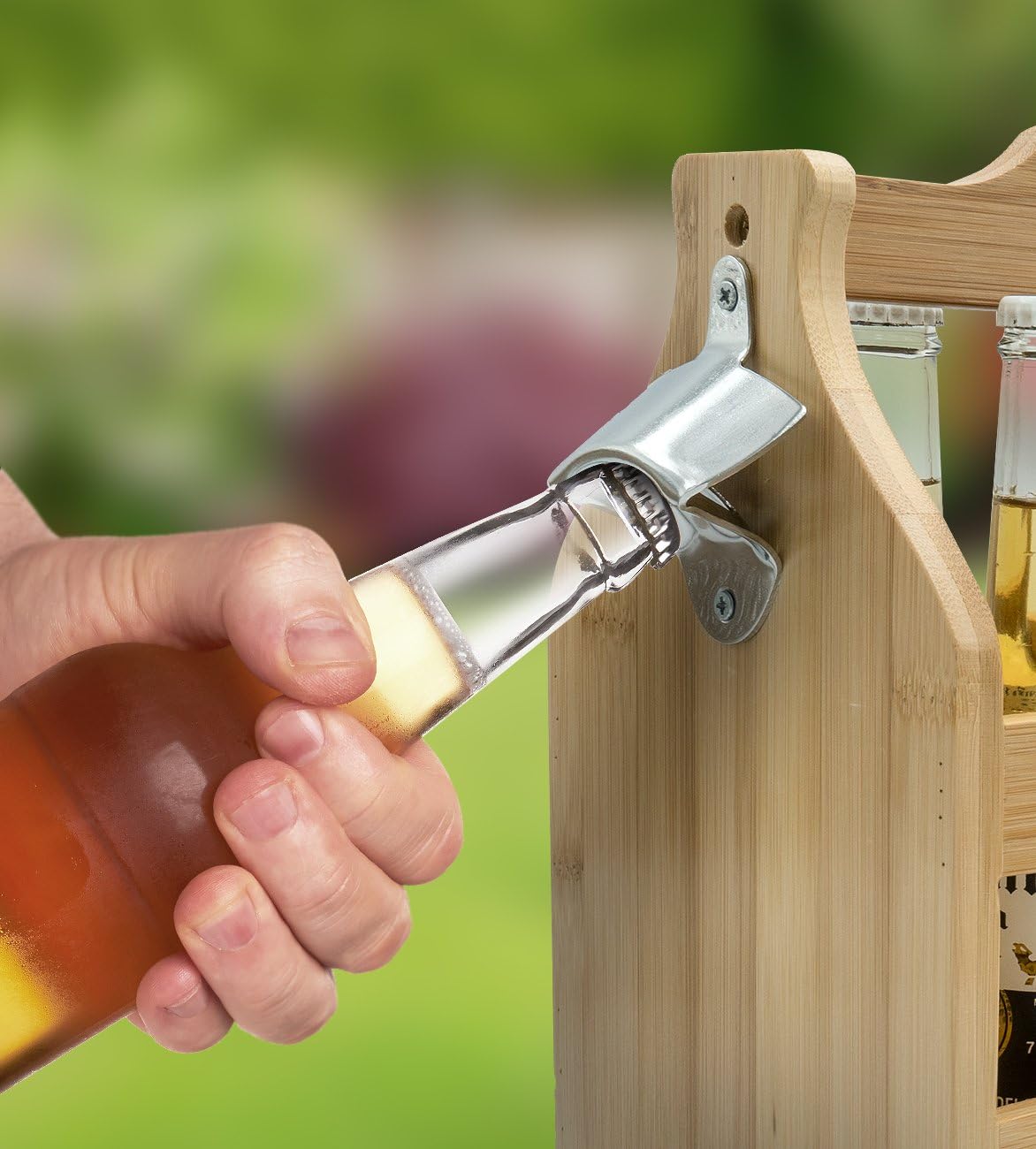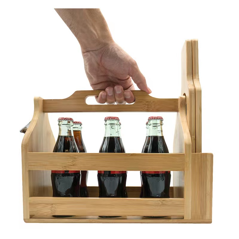 Bamboo Wooden Bottle Caddy with openner