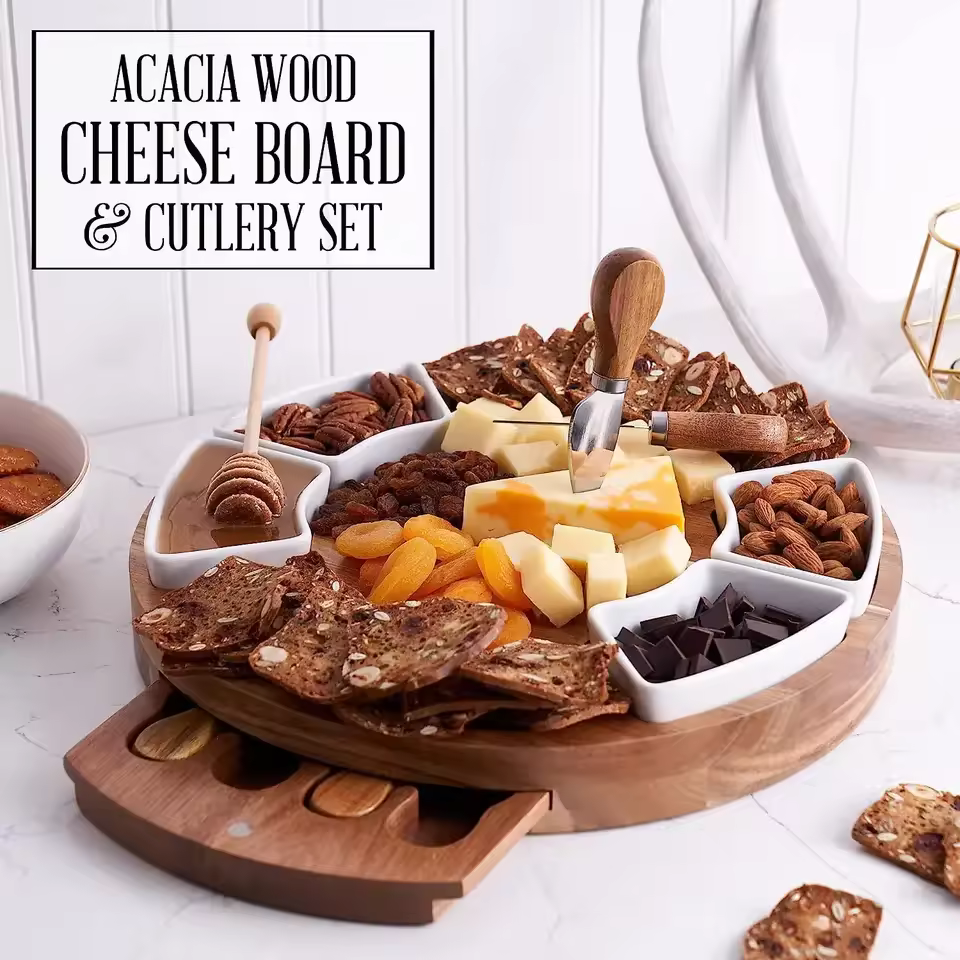 Acacia Wood Cheese Board with knife set