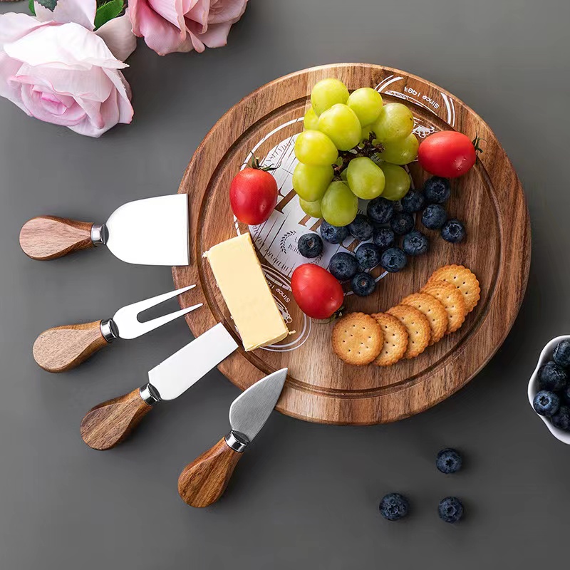 Round Bamboo wood Cheese Board with knife set