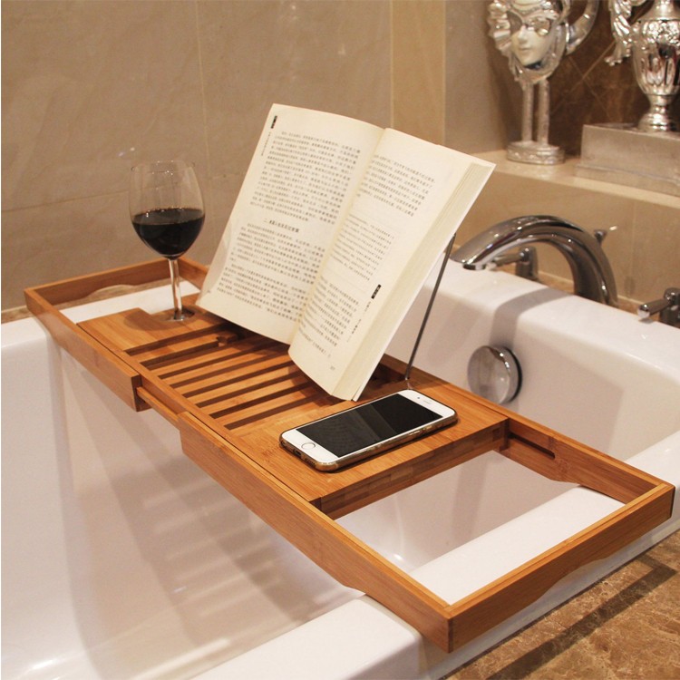 Bathtub Caddy Shower Bath Tub Reading Tray Organizer with Extending Slides