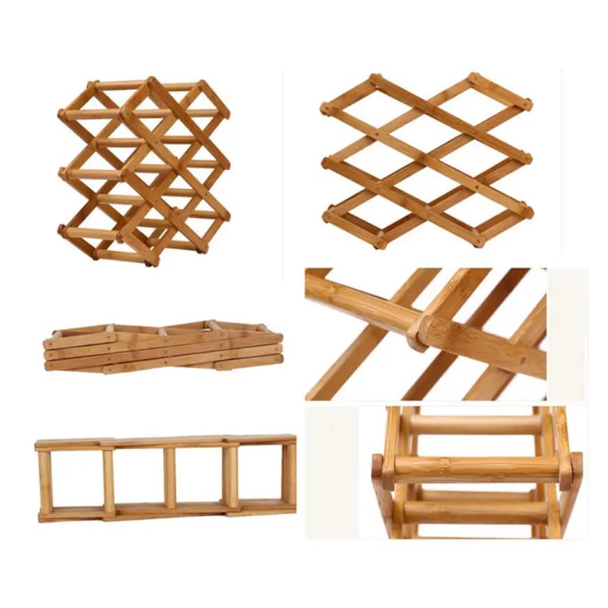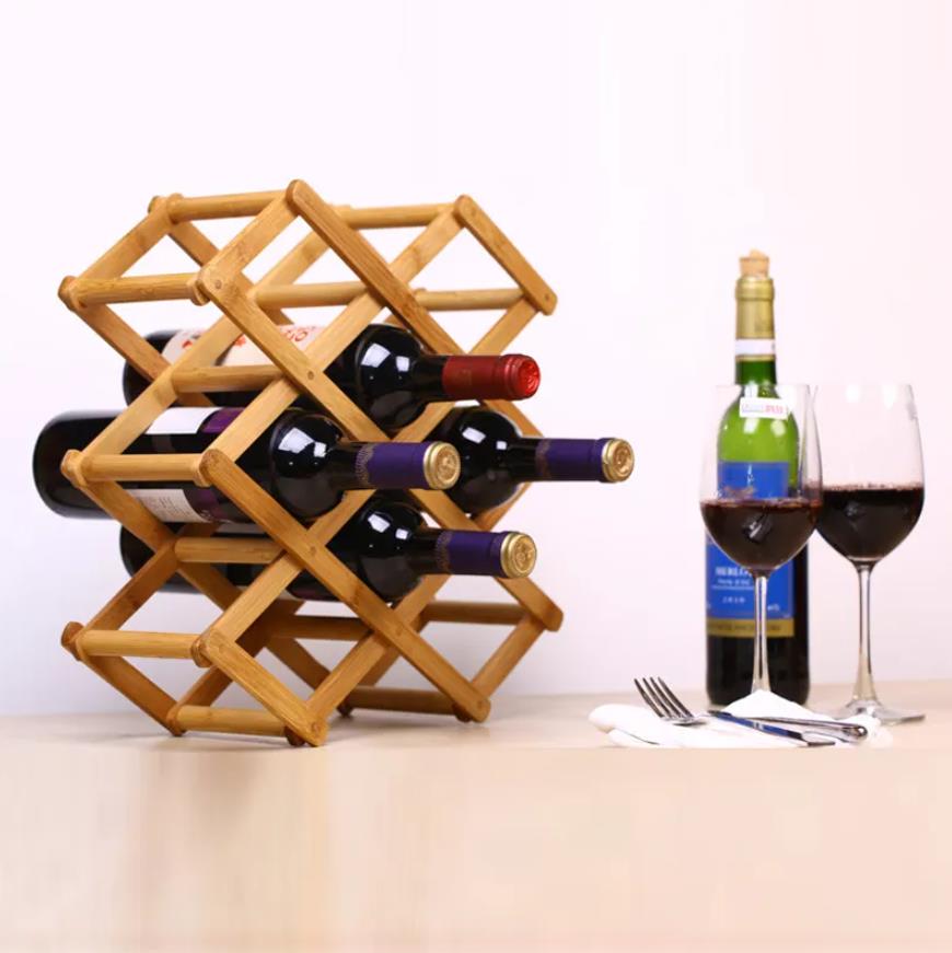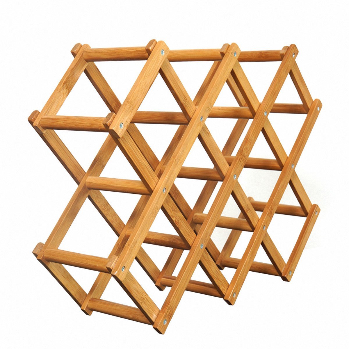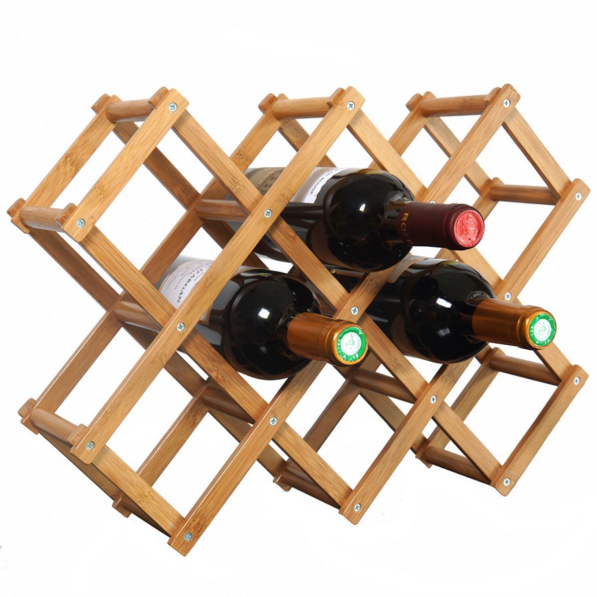 Foldable Bamboo Wine Rack Wine Holder Storage Display Stand 10-Bottle Free Standing Wine Rack