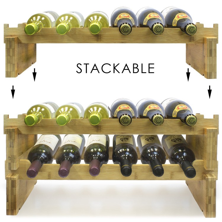 3-Tier Stackable Bamboo Wine Holder Storage Display Stand 18-Bottle Free Standing Wine Rack