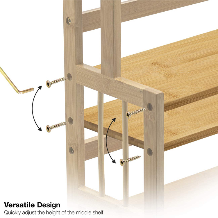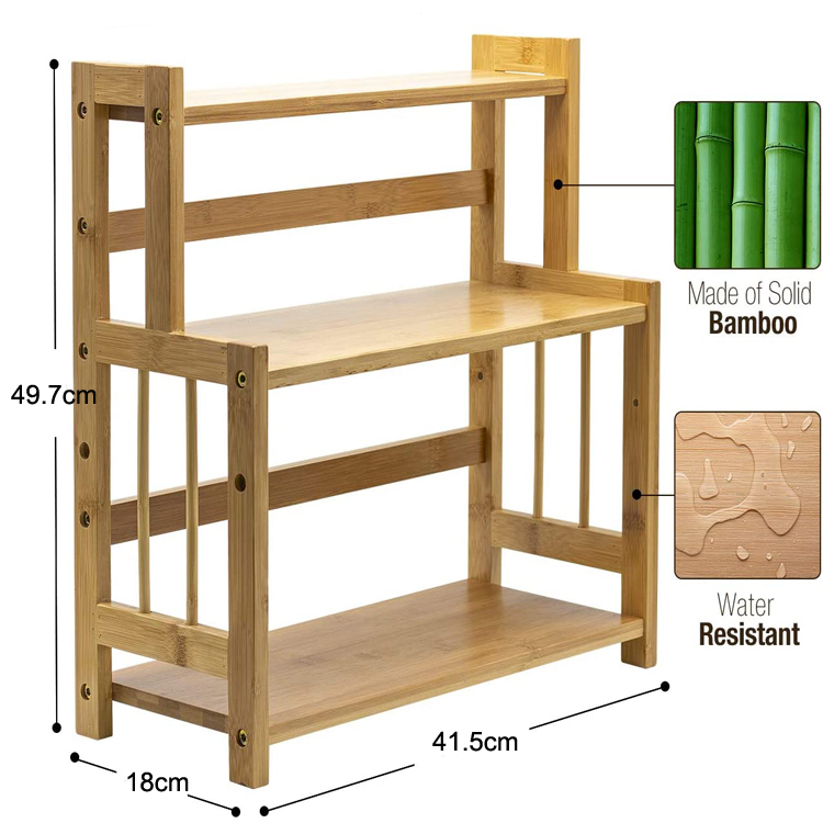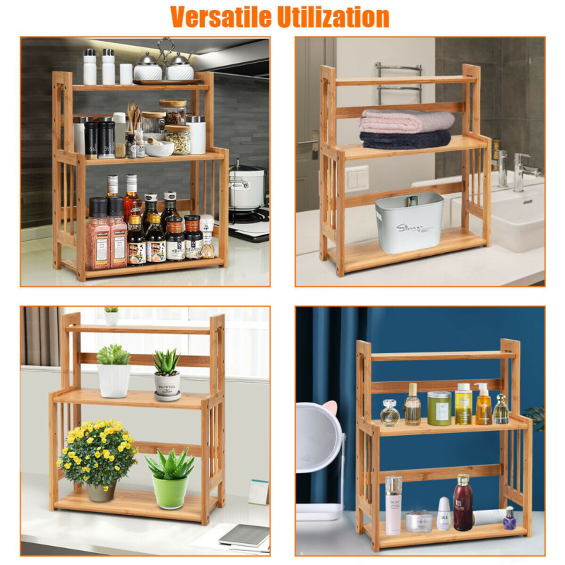 3-Tier Standing Spice Rack Kitchen Bathroom Countertop Storage Organizer, Bamboo Spice Bottle Jars Rack Holder with Adjustable Shelf