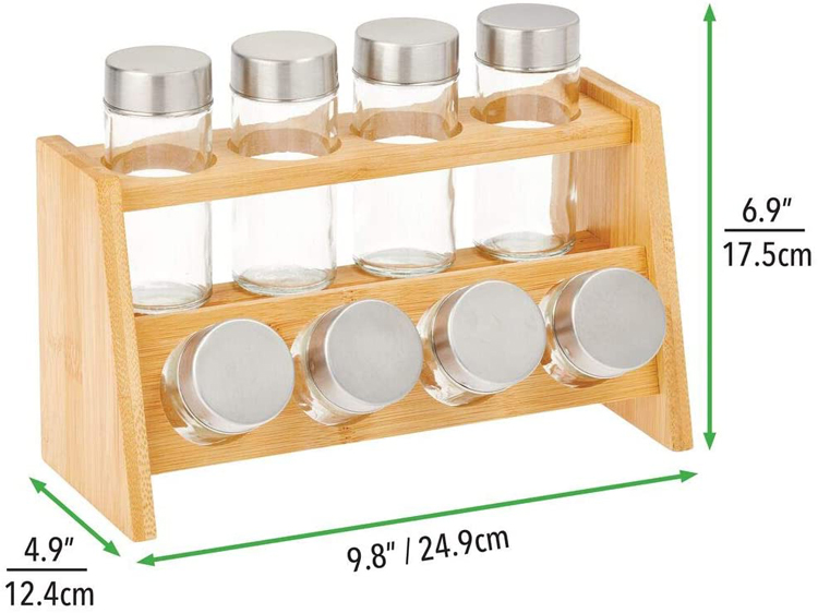 Bamboo Kitchen Cabinet, Pantry, Shelf Organizer Spice Rack - 2 Level Storage, Eco-Friendly, Multipurpose, Includes 8 Glass Jars - Natural Light bamboo