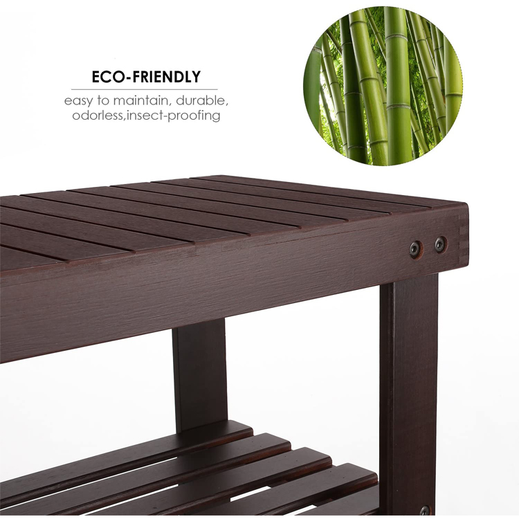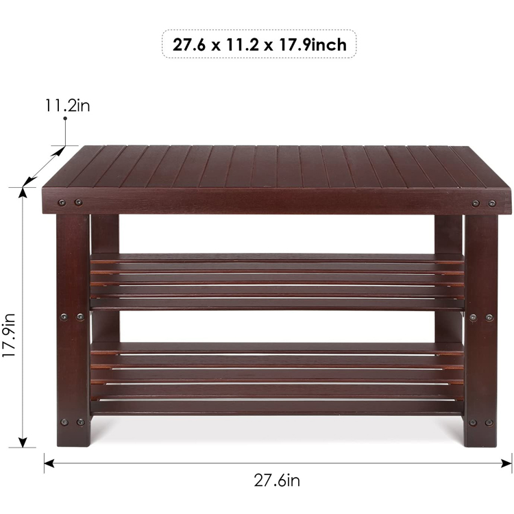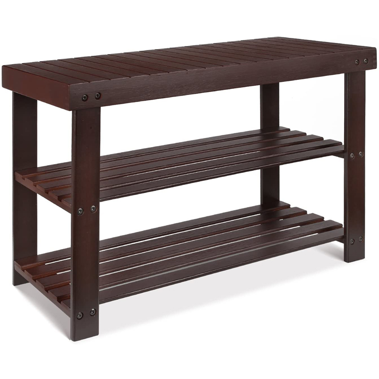 Bamboo Shoe Rack Bench 3-Tier, Shoe Organizer, Storage Shelf, Good Load Bearing, Ideal for Entryway Hallway Living Room and Corridor Dark Brown